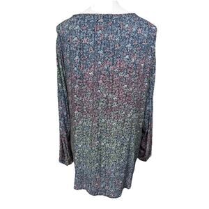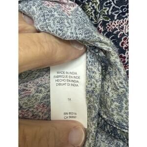 Lucky Brand Women's Top Plus Sz 1X Blue Floral Ombre' Lightweight Long Sleeves