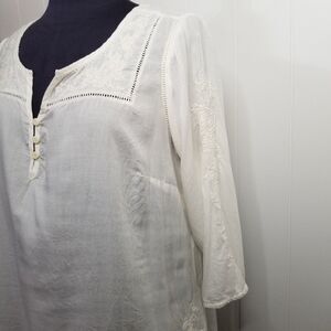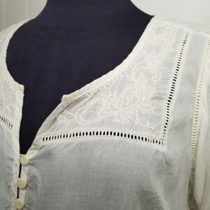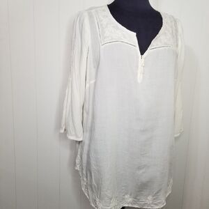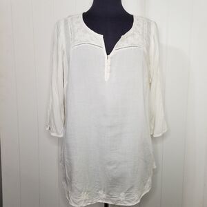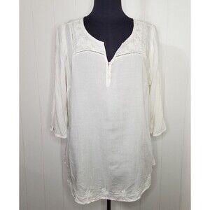 Lucky Brand Women's Top Size 1X Ivory Embroidered Boho Floral Long Sleeve