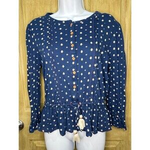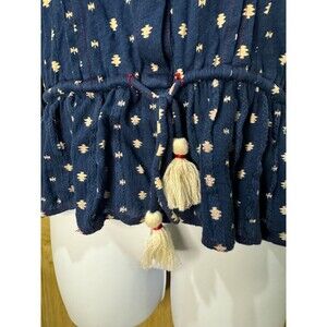 Lucky Brand Womens Top Size S Boho Peasant Cottagecore Blue Aztec