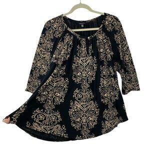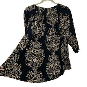 Lucky Brand Womens Tunic Top size 2X Black Tan Floral Paisley Boho Knit