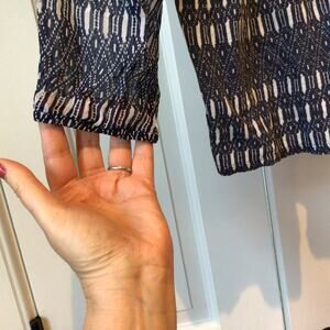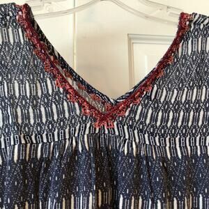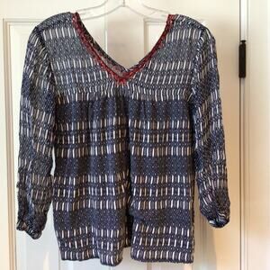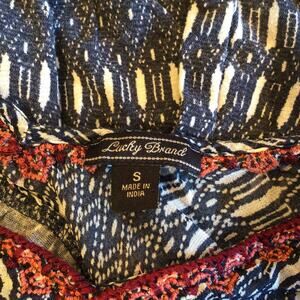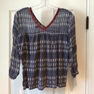 Lucky Brand Women's V-neck Embroidered Linen Blend Top Sz S