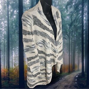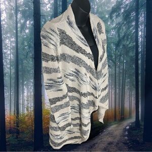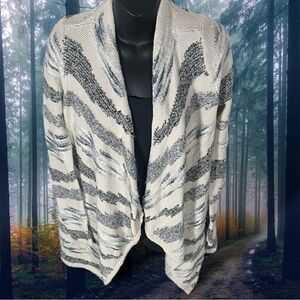 Lucky Brand Womens Waterfall Long Cardigan Cream Blue Cotton Wool Blend Size XS