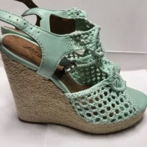 Lucky Brand Womens Wedges teal macrame Size 7.5