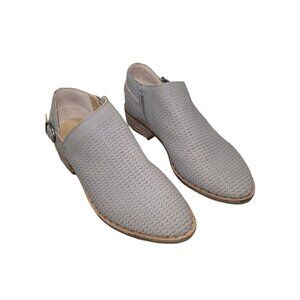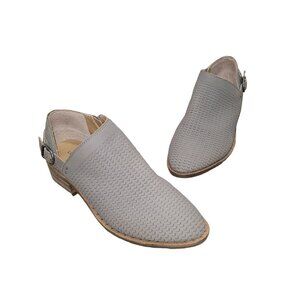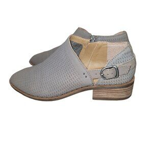 Lucky Brand Women's Gahiro Western Loafers Ankle Booties Gray Suede Perforated Casual Low Heel Boot Western Suede Perforated Block Cutout Accents