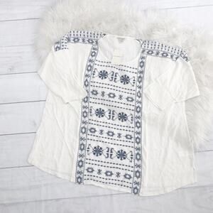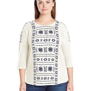 Lucky Brand Women's White Geo Embroidered Round Neck Longsleeve Top Plus 3X