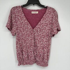 Lucky Brand Women's Wrap Rayon Printed Surplice Top Pink Multi Size Small NWT