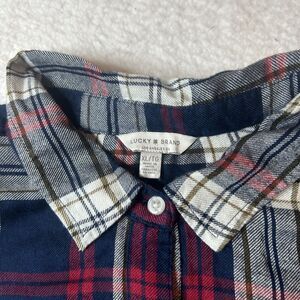 Lucky Brand Women’s XL Button Up Tartan Plaid Flannel Longsleeve Western Red