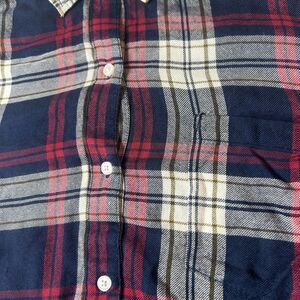 This Lucky Brand women's button-up shirt features a classic tartan plaid pattern in a bold red color, perfect for adding a touch of Western style to your wardrobe. Made from cozy flannel fabric, this long sleeve top is ideal for staying warm on chilly days. It is available in size XL, and is designed for regular fit. The shirt is easy to style with jeans or leggings, making it a versatile addition to your collection. Whether you're headed to a casual outing or a night out with friends, this Lucky Brand shirt is sure to be a go-to piece in your closet.