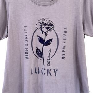 Lucky Brand Womens XL Rose Graphic Scoop Neck T-Shirt Purple Boho FLAWS