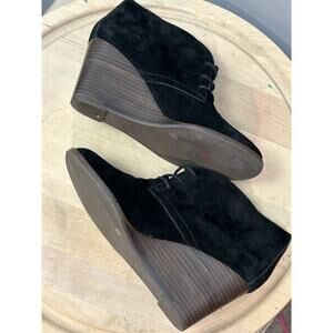 Lucky Brand Women's Yamene Boot Size 9.5 Wedge Heel Black Suede Lace Up Desert