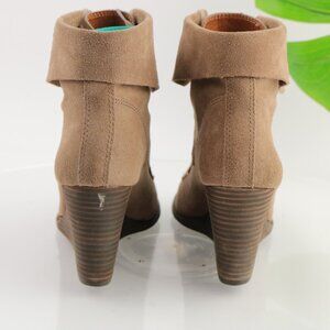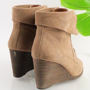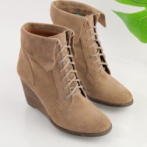 Lucky Brand Womens Yuzu Boot Size 9 Tan Suede Lace Up Bootie Wedge Heel Medieval