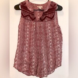 Lucky Brand Women’s red embroidered boho tank blouse S bohemian lightweight