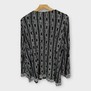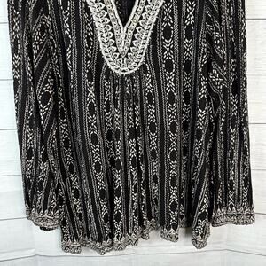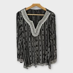 Lucky Brand Womens size 2X Embroidered Beaded Linen Geometric Boho Blouse