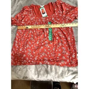 Lucky Brand Womens size XL top orange liberty floral print square neckline