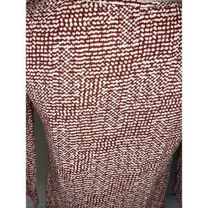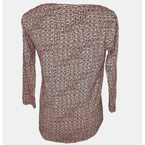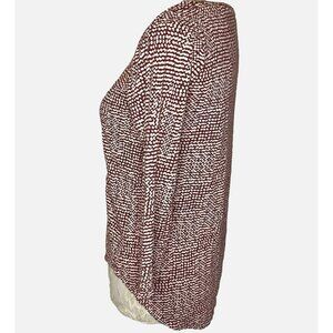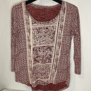 Lucky Brand Women's sz S Red Tan Print Boho Asymmetrical 3/4 Sleeve Top Shirt