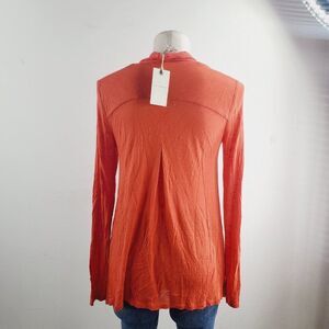 Lucky Brand Women's Orange Long Sleeve V-Neck Asymmetric Hem Button Tunic Top XS