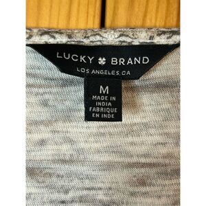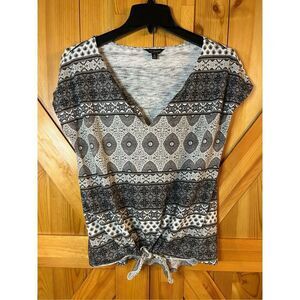 Lucky Brand Women’s Tie Waist Short Sleeve Boho Blouse Sz Medium pit to pit 20.5” length 25” longest point (0492)
