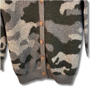 Lucky Brand Wool Blend Camouflage Cardigan Sweater Small Green Button Up Soft