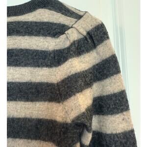 Lucky Brand Wool Mix Crew Neck Sweater Multi Pattern Grey Puff Sleeve