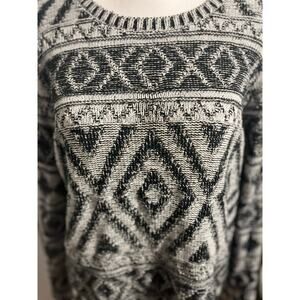 Lucky Brand XOXO Sweater L Tribal Fair Isle GrandpaCore Boho Knit Pullover