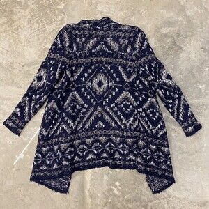 Lucky Brand XS Cardigan Sweater Duster Navy Cream Aztec Open Drape Front Long Sleeve