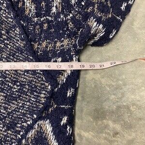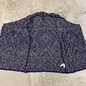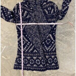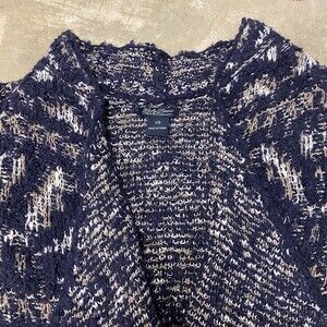 Lucky Brand XS Cardigan Sweater Navy Cream Aztec Open Drape Front Long Sleeve