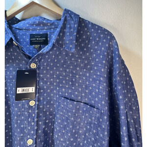 Lucky Brand long sleeve button front shirt blue with white snowflake pattern XXL NWT