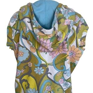 Lucky Brand Y2K Sweatshirt Cap Sleeve Hooded Vest Groovy Flower Power 70s Print
