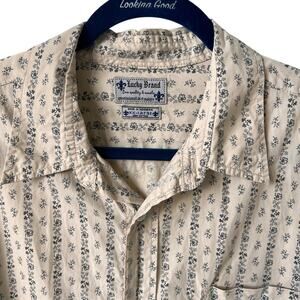 Lucky Brand Y2k Button Down Shirt Men's XXL Long Sleeve Floral Ivory Western Vtg