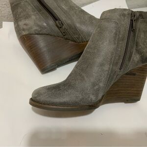 Lucky Brand Yabba Women's Ankle Wedge Booties Size 5.5 M, Gray Leather