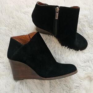 Lucky Brand Yakeena Black Suede Wedge Heeled Booties Size 10