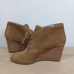 Lucky Brand Yamene Tan Leather Lace-Up Wedge Ankle Booties 998