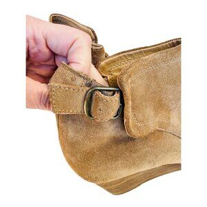 Lucky Brand ‘Yasine’ Suede Wedge Slip On Buckle Ankle Bootie Tan/Camel 10 Boho