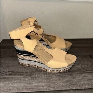 Lucky Brand Yejida Tan Leather Woven Strappy Platform Wedge Sandals Size 10