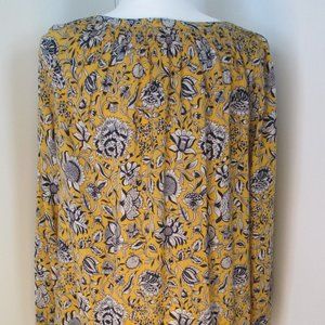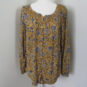 Lucky Brand Yellow and Blue Floral Button-Down Collarless Top Size L
