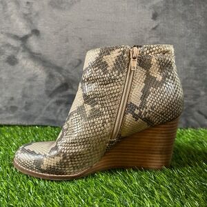 Lucky Brand Yewani Wedge Booties Snakeskin Print Ankle Boots Side Zip Womens 8 M