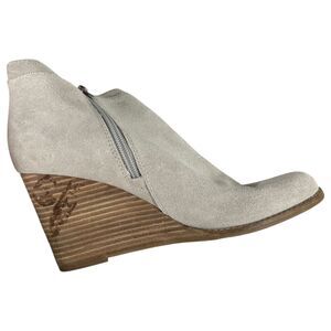 Lucky Brand Yimina Grey Suede Wood Wedge Ankle Boots Booties Women's Size 9