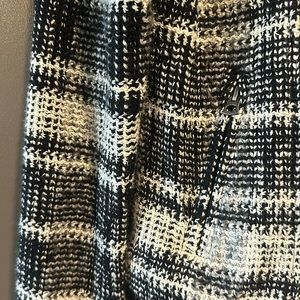 Black/white/grey soft sweater like material jacket, zips in front and has size zipper pockets as well, worn twice, excellent condition!
