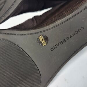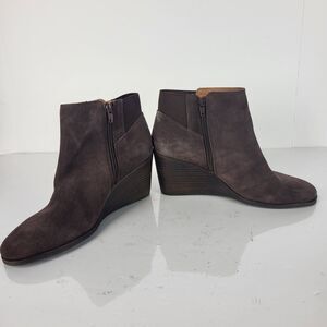 Lucky Brand Zorlina Ankle Boots Wedge Heel Zip Up chocolate Suede 8.5M