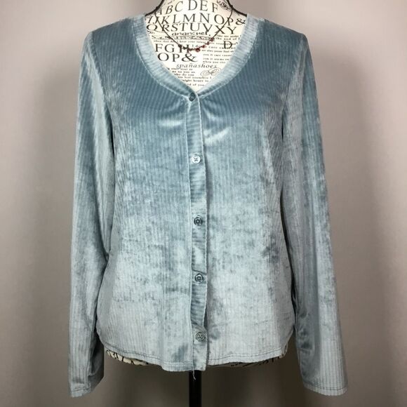 Lucky Brand aqua velvet ribbed long sleeve button down 90s y2k fairy sz Medium