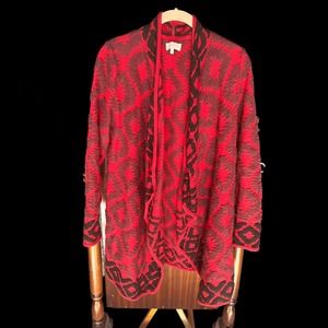 Lucky Brand aztec southwestern tribal red knit open front sweater cardigan Small