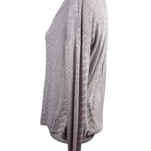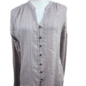 Lucky Brand top. Beige with cream Chevron print. Buttons on the front. V neck. Long sleeves. Excellent preowned condition. Size small.