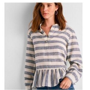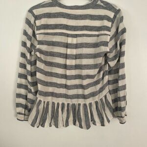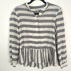 Lucky Brand blouse Women Gray white Striped Long Sleeve Peplum Hem Top small