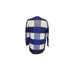 Lucky Brand blue and white plaid open front cardigan w pockets, size small