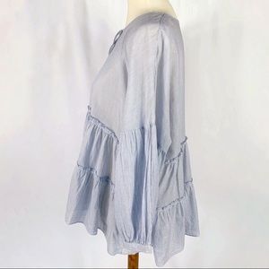 Lucky Brand blue & white stripe 3/4 balloon sleeve ruffle tiered top, Small