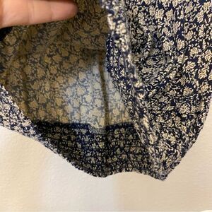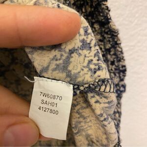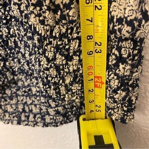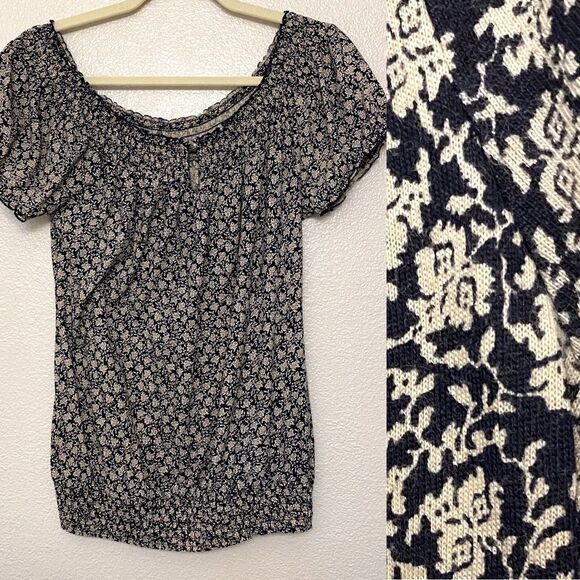 Lucky Brand boho white black print smocked cotton short sleeve blouse top-S