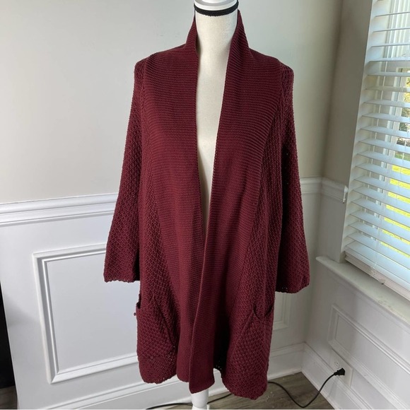 Lucky Brand burgundy knit sweater cardigan size large