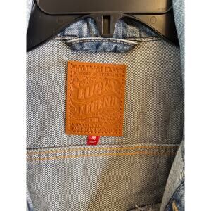 Lucky Brand embroidered American flag, distressed, denim, trucker jacket, medium