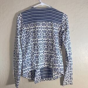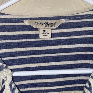 Lucky Brand front zipper jacket. Size extra small. High low style. Fabric has a bit of stretch to it. Zipper zips off up off center. Armpit to armpit measures 15” length 24”