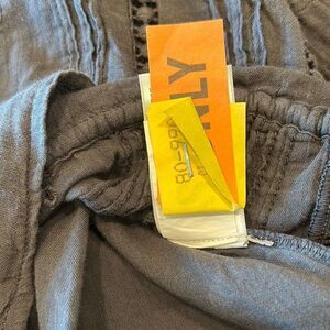Lucky Brand gray eyelet button front w/tie boho peasant shirt top blouse S